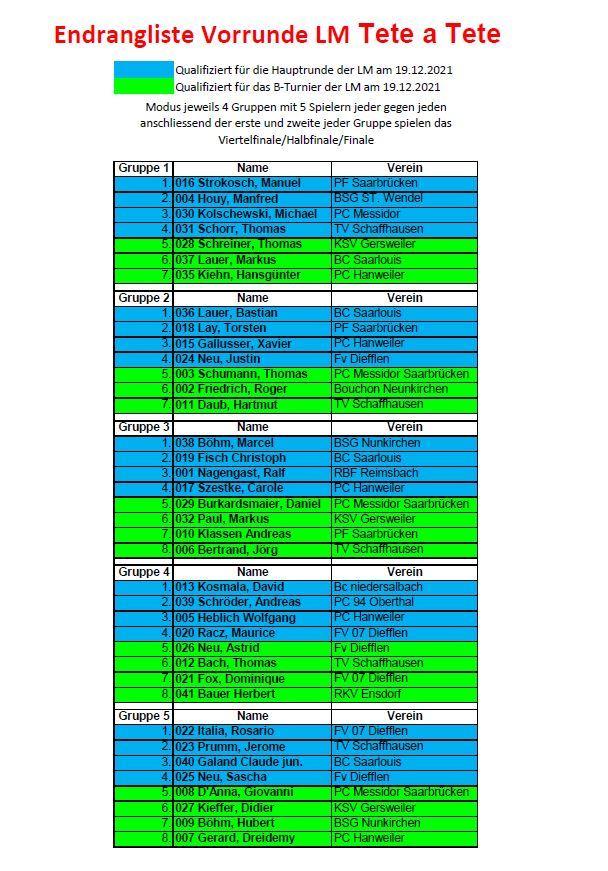- Ergebnis der Vorrunde der Landesmeisterschaft Tete a Tete 2021